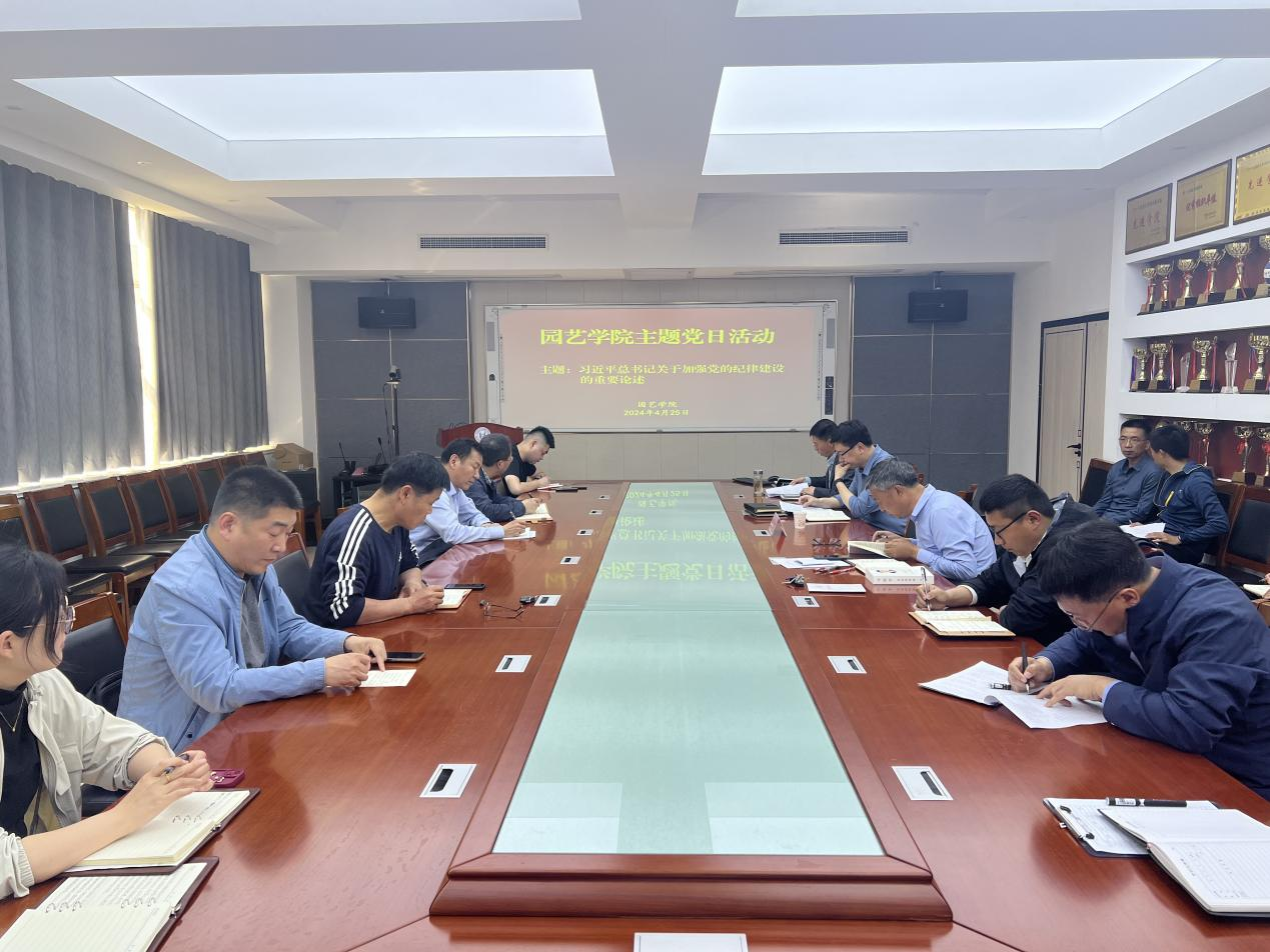 4月25日下午,园艺学院各教工党支部在生物楼N306联合开展党纪学习教育主题党日活动,学习习近平总书记关于加强党的纪律建设的重要论述。会议由学院党委书记隋成竹主持,全体教工党员参加。