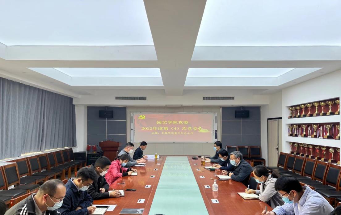 2022年4月14日下午,园艺学院在生物楼N306会议室召开学院党委扩大会议,专题研究部署意识形态工作。学院党委班子成员、党支部书记、系主任、学工办成员、办公室人员参加会议。党委书记隋成竹主持会议。