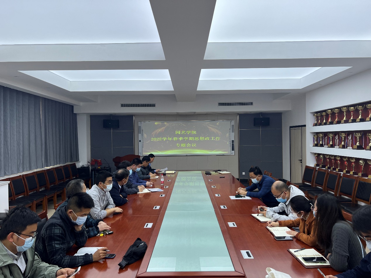 为深入贯彻落实全国高校思想政治工作会议精神,扎实推进学院思想政治工作,4月28日,园艺学院党委在生物楼N306召开2022年上半年思想政治工作专题会议。学院党委委员、党支部书记、系主任、办公室人员参加会议。党委书记隋成竹主持会议。