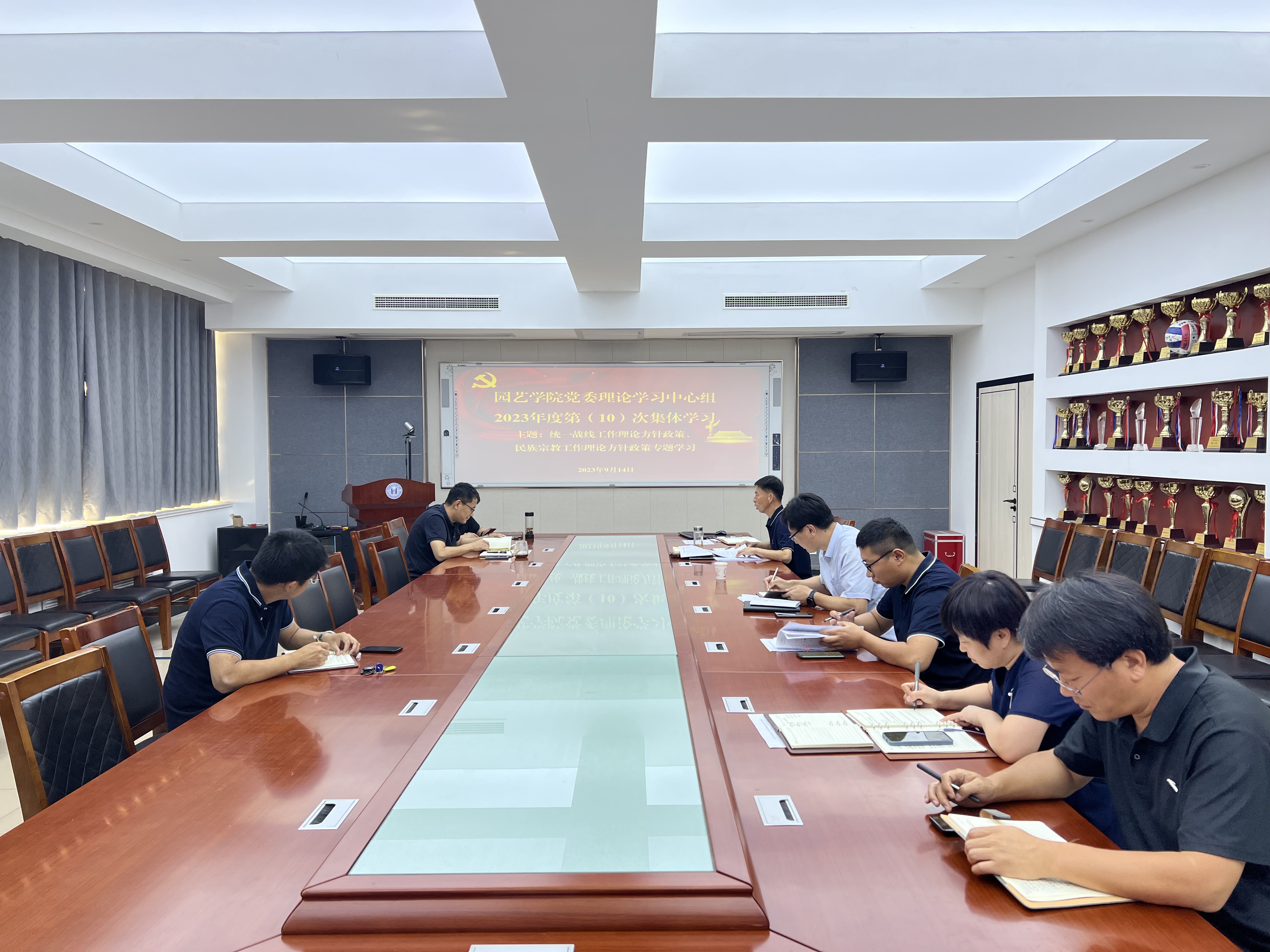 9月14日下午,园艺学院党委理论学习中心组开展统一战线工作暨民族宗教工作理论方针政策专题学习。会议由学院党委书记隋成竹主持,学院党委委员参会,院长张忠华、院长助理郑晓东、教工党支部书记列席了会议。