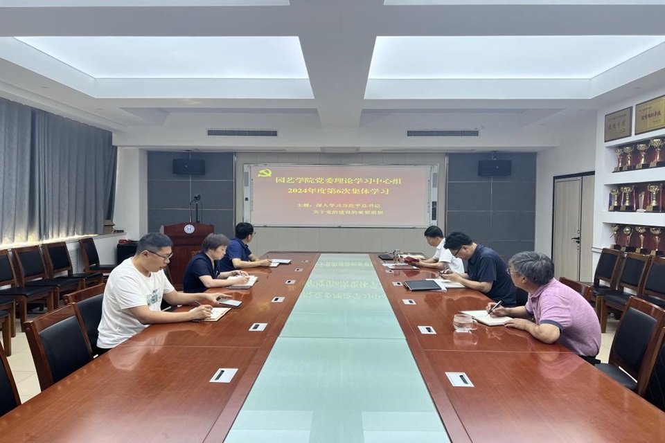 6月19日下午,园艺学院党委理论学习中心组召开学习会,专题学习习近平总书记关于党的建设的重要思想。会议由学院党委书记隋成竹主持,学院党委委员参会,院长助理郑晓东列席。