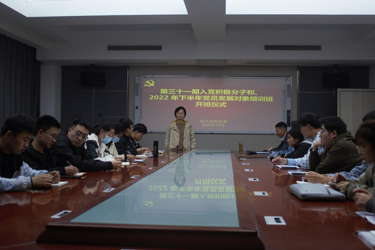 为进一步加强党性修养,提高思想境界,坚定政治追求,10月25日,园艺学院于生物楼N306举行第三十一期入党积极分子和2022年下半年党员发展对象培训班开班仪式。