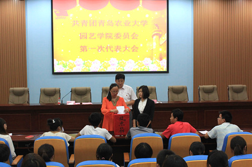 大会分为开幕式暨第一次全体会议和第二次全体会议两部分。《国歌》奏响,展开了我院第一次团代会的序幕。园艺学院学生代表姚丹发言,校团委书记初磊、园艺学院党总支书记刘培利依次向大会致辞,对我院团代会的召开表示热烈祝贺。第二阶段,园艺学院分团委书记刘燕杰作了大会工作报告,回顾了学院近年来取得的成绩,并表示在今后的学院工作中再接再厉,努力开创园艺学院共青团工作新局面。随后召开了各代表团会议,各小组学习讨论了领导讲话,审议并通过《共青团青岛农业大学园艺学院第一次代表大会工作报告》。第二次全体代表会议上,与会代表举手表决通过了《共青团青岛农业大学园艺学院第一届委员会委员及代表举办法》,投票差额选举了共青团青岛农业大学园艺学院第一届委员会委员以及学院参加共青团青岛农业大学第一届代表大会代表。第三次全体代表会议上,总监票人宣读了共青团青岛农业大学园艺学院委员会第一届委员名单以及学院参加共青团青岛农业大学委员会第一次代表大会的代表名单。