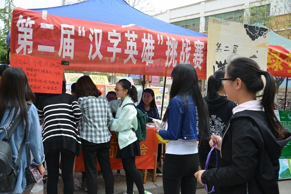 4月23日,由园艺社联承办,家教协会、集邮协会、茶文化协会、中华美食营养与安全协会、创意DIY协会联合协办的"汉字英雄"挑战赛报名在3号楼前进行,五个协会的骨干共同参与了此次的活动。