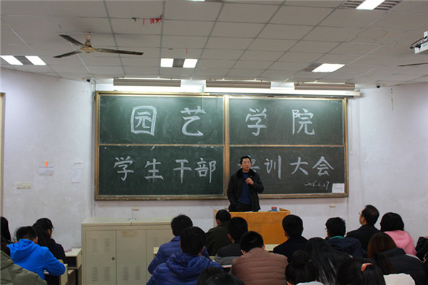 为了敦促同学们以崭新的姿态迎接新学期的到来,2月27日下午2:00,园艺学院在教学楼B103召开了新学期学生干部培训大会,园艺学院党委副书记梁永平、分团委书记刘燕杰和正科级辅导员王宏儒参加了本次会议。