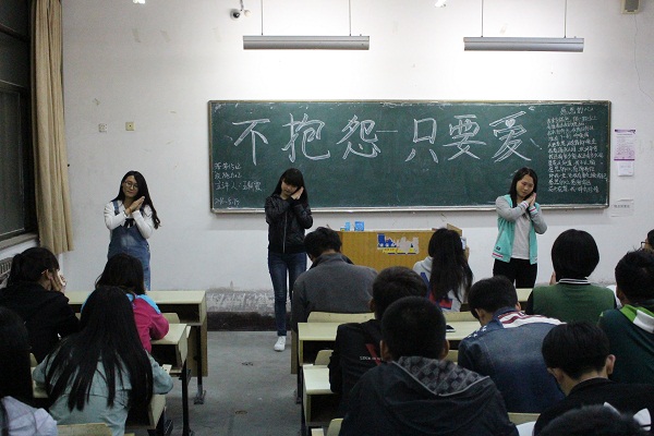 为了增强同学们对自我情绪的管理,减少对生活的抱怨,5月15日晚上7:00,园艺学院在教学楼E区等教室开展了"不要抱怨,只要爱"主题学 习活动,14级、15级全体同学参加。