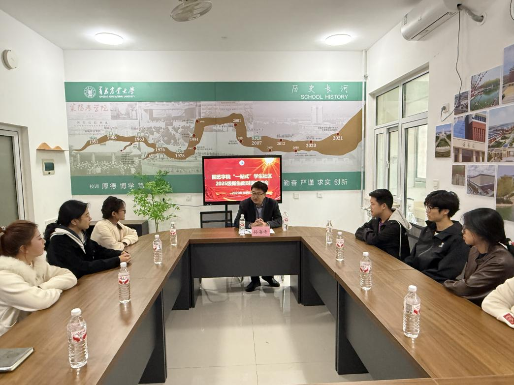 为深入了解2025级新生入学以来的适应情况及发展需求,搭建学院与学生之间的沟通桥梁。10月31日上午,园艺学院党委副书记、副院长孙海涛在平度校区一站式社区与2025级新生开展座谈交流,2025级7名学生代表参加座谈。