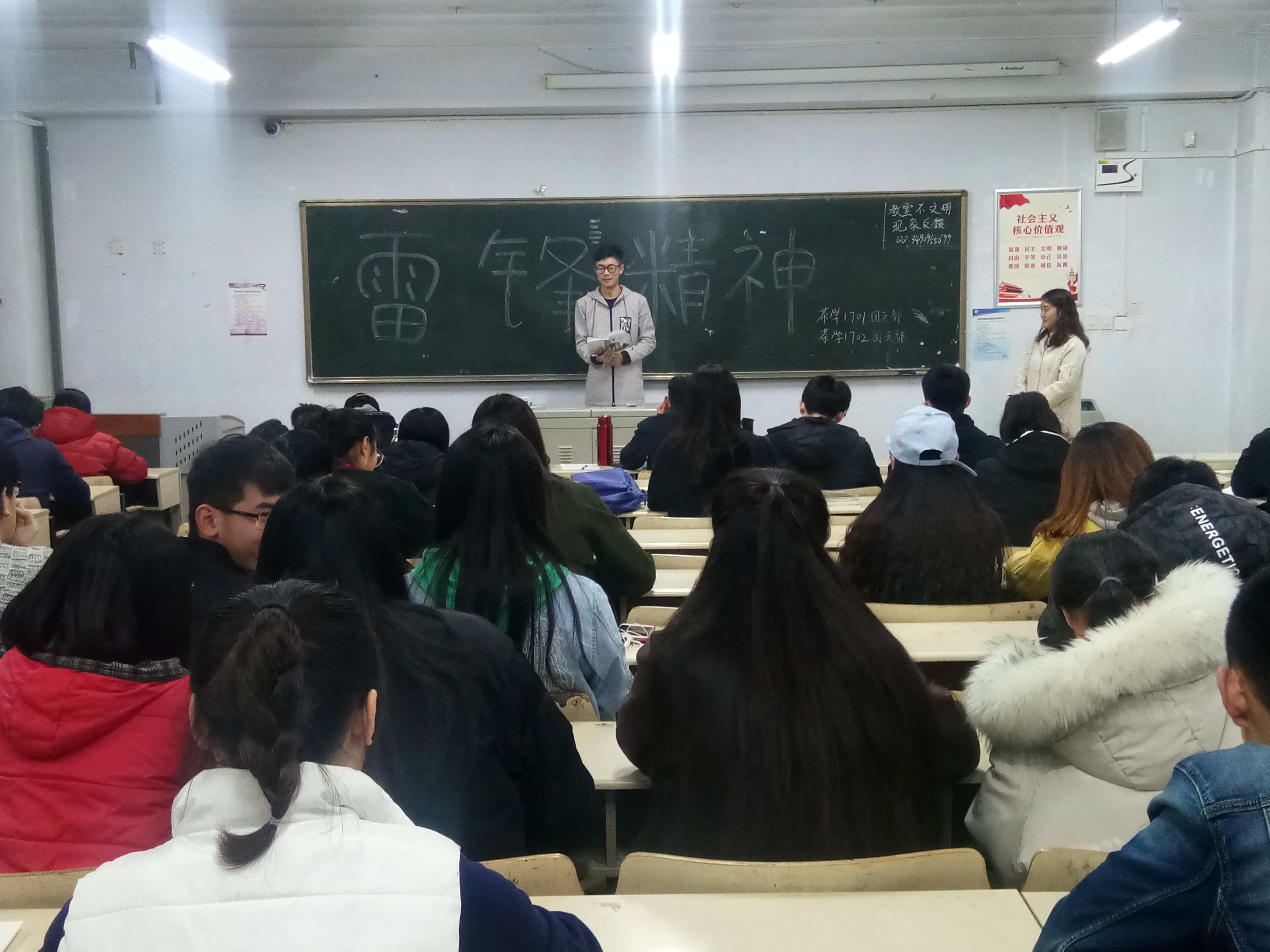 “人的生命是有限的,可是,为人民服务是无限的。我要把有限的生命投入到无限的为人民服务之中”,在雷锋的名言中,无不展现出他为人民服务,无私奉献的精神,徐文良同学分享了雷锋生前的感人事迹,崇高品质以及他的精神追求,号召同学们学习雷锋精神,收到了同学们的积极响应。
