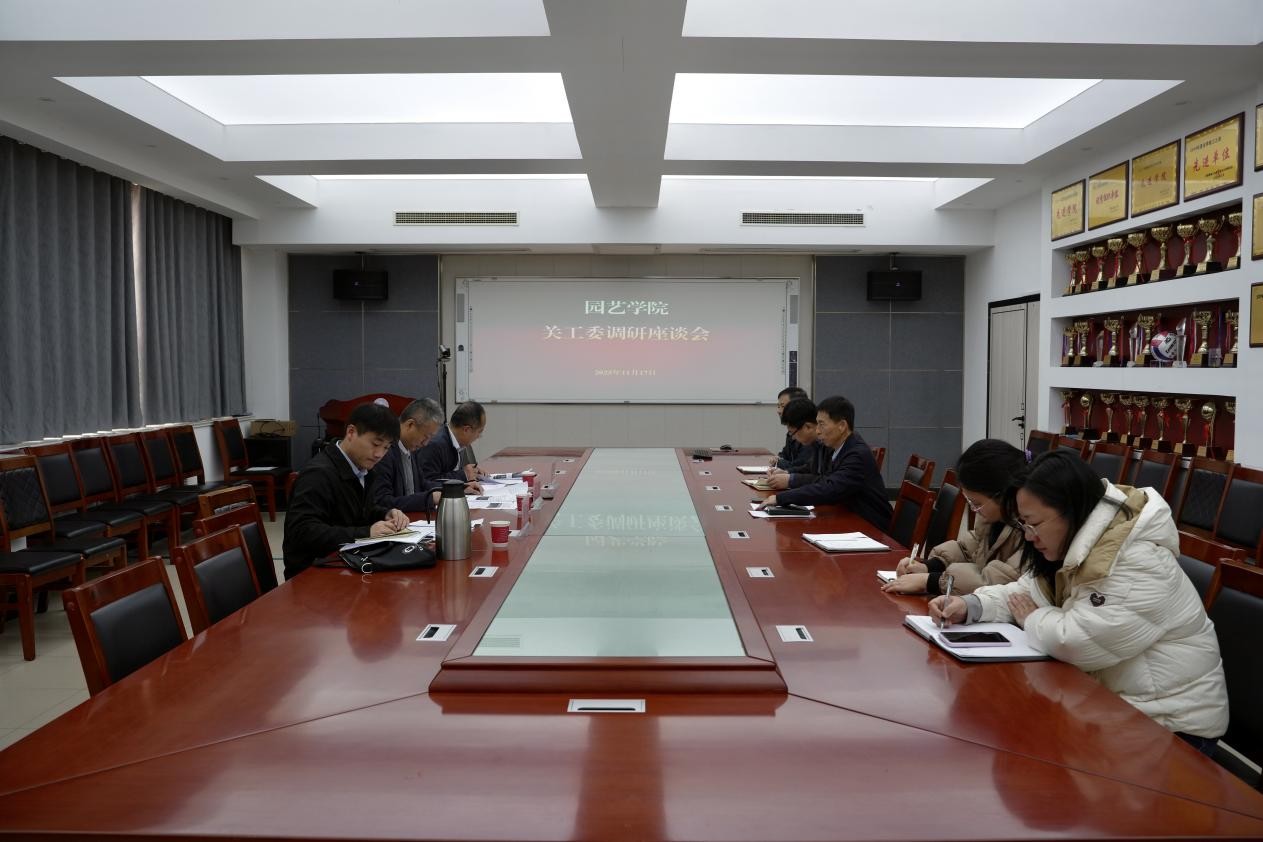 11月17日,离退休工作处党委书记、处长丛鹏,离退休工作处正处级干部肖伟一行来到园艺学院,就学院关工委工作开展情况进行调研指导。园艺学院党委书记、关工委主任隋成竹,副主任祝军,党委副书记、副院长、关工委秘书长孙海涛,及园艺学院关工委成员参加座谈。